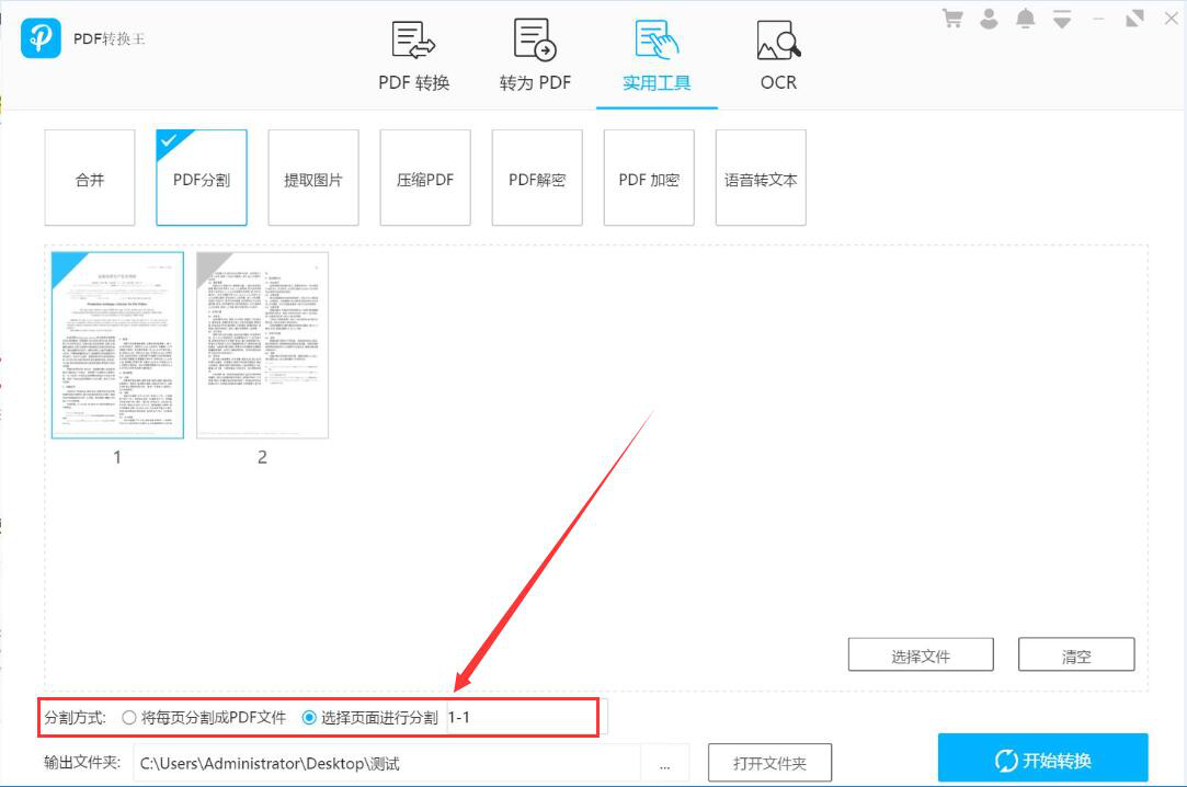 3、然后,在PDF转换王的PDF分割界面中,根据自己的需要选择PDF的分割方式。