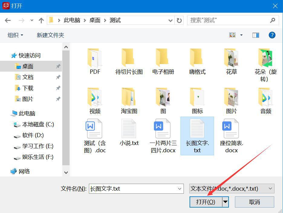 2、在弹出的窗口中,将需要转语音的文字文档选中,并点击“打开”按钮,将其导入闪电文字语音转换软件。