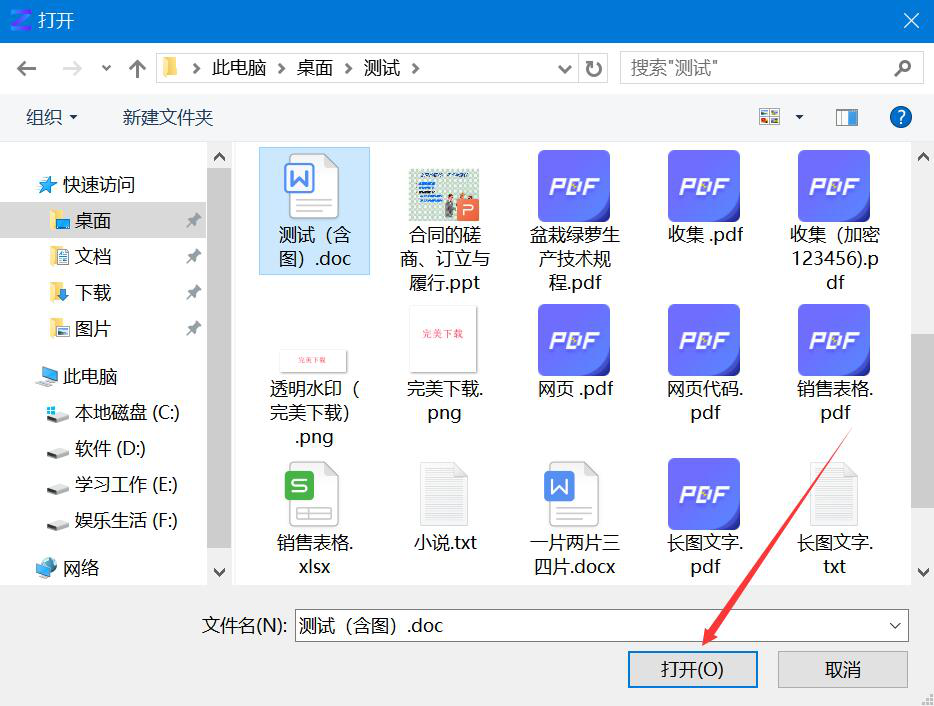 3、然后,在弹出的窗口中,将需要ZookaWare粉碎的电脑文件选中,再点击“打开”按钮。