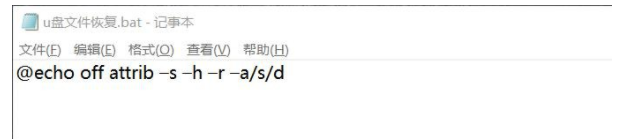 将新建的TXT文本重命名为“u盘文件恢复.bat”,并将新建文档复制到U盘,双击运行即可找回丢失文件。