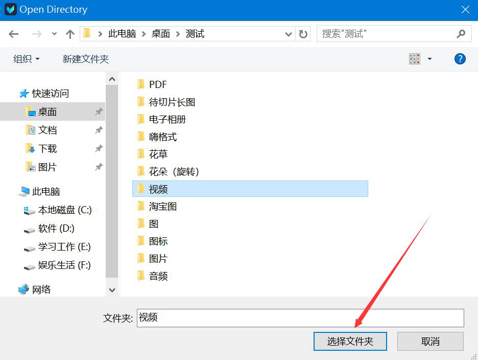 9、在弹出的窗口中,选择提升了质量的视频的保存路径,并点击“选择文件夹”按钮。