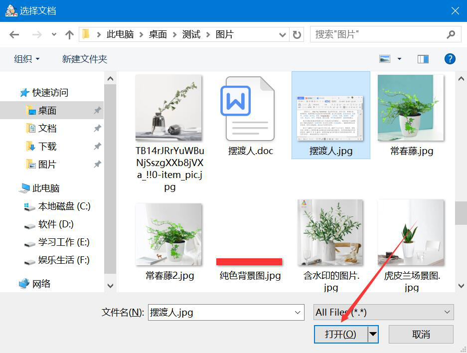 3、然后,在弹出的窗口中,选择需要识别文本并保存为PDF文件的图片,并点击“打开”按钮,将其导入PDF24 Creator。