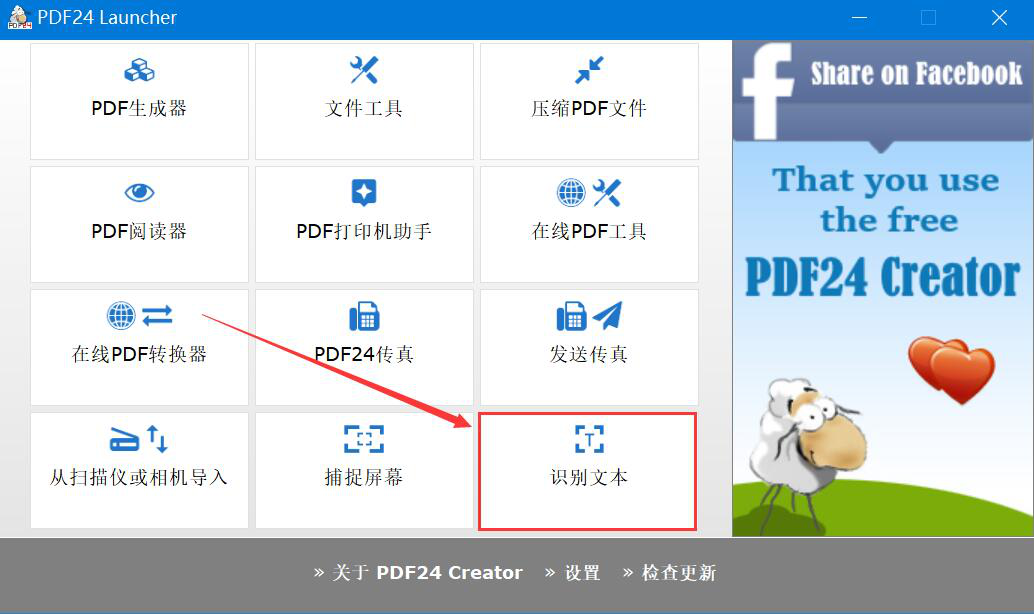 1、首先,我们打开PDF24 Creator,在其功能向导页面中,点击“识别文本”选项。