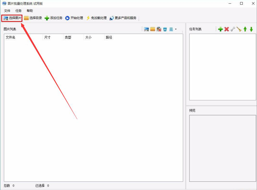 1、首先,我们打开图片批量处理系统,点击界面左上方的“选择图片”按钮。