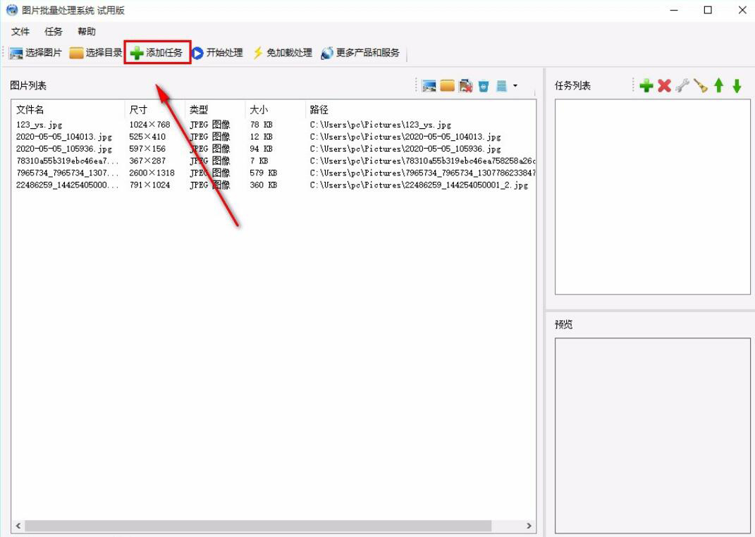 3、然后,我们回到图片批量处理系统的操作界面,点击“添加任务”按钮。