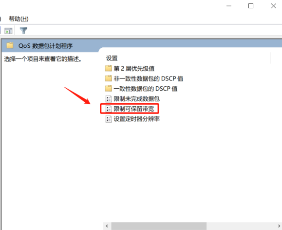 3、如图,双击【限制可保留带宽】项目,弹出窗口,选择【已启用】,设置【带宽限制】为0,保存设置即可。