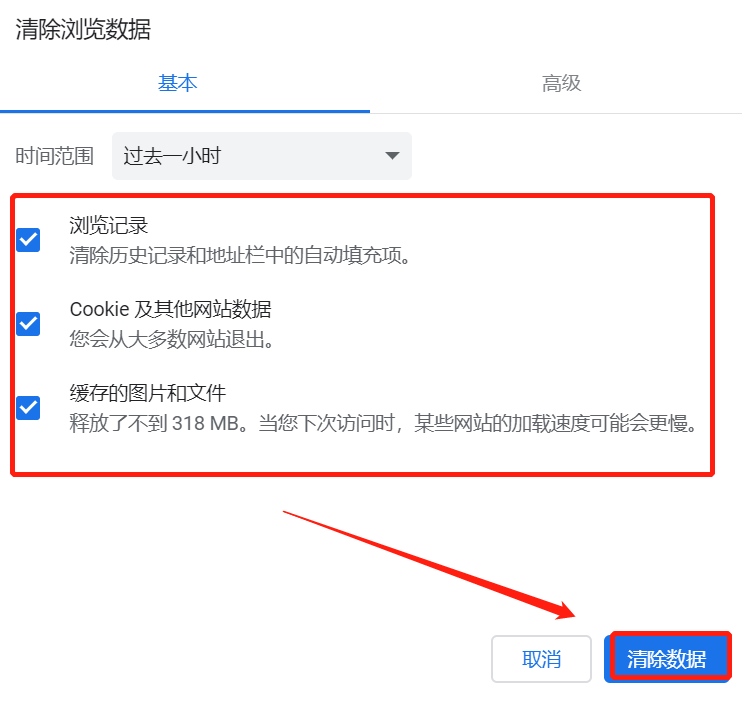2、选择需要清除的浏览数据,点击【清除数据】即可。