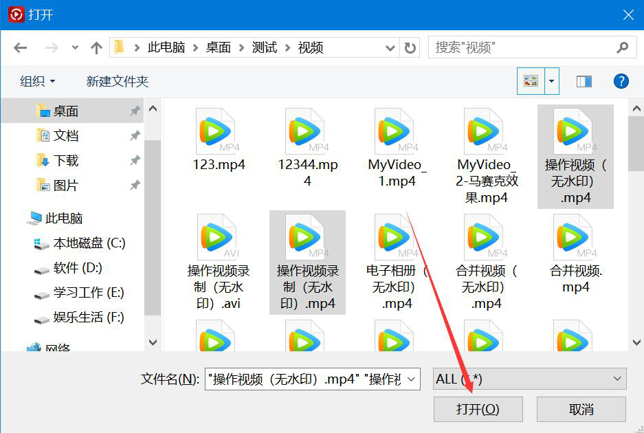 2、在弹出的窗口中,选择需要金舟视频格式转换器合并的视频片段,并点击“打开”按钮。