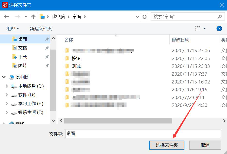 5、在弹出的窗口中,选择视频合并后的保存路径,并点击“选择文件夹”按钮。