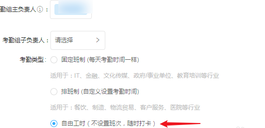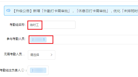 自定义一个考勤组名称,例如临时工,点击【参与考勤人员】,选择使用此考勤的人员,在【考勤类型】中选择自由工时,