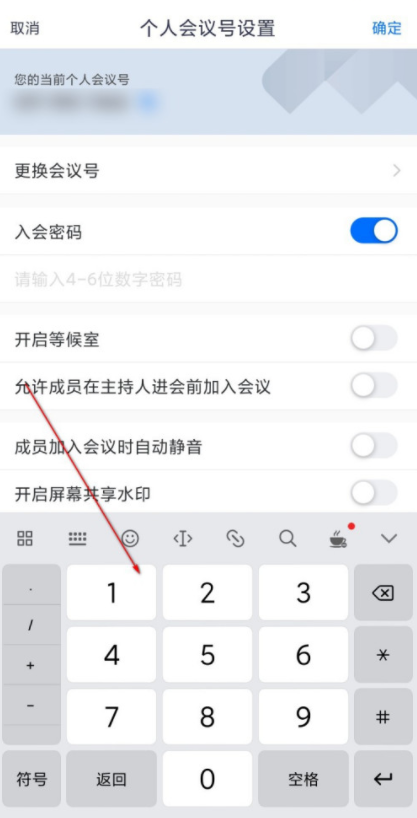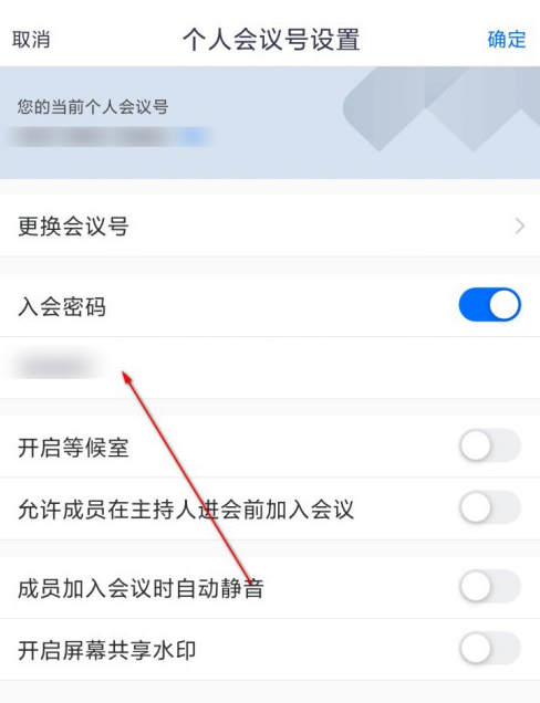 进入个人会议号设置界面,如图,点击【入会密码】,自行设置密码,
