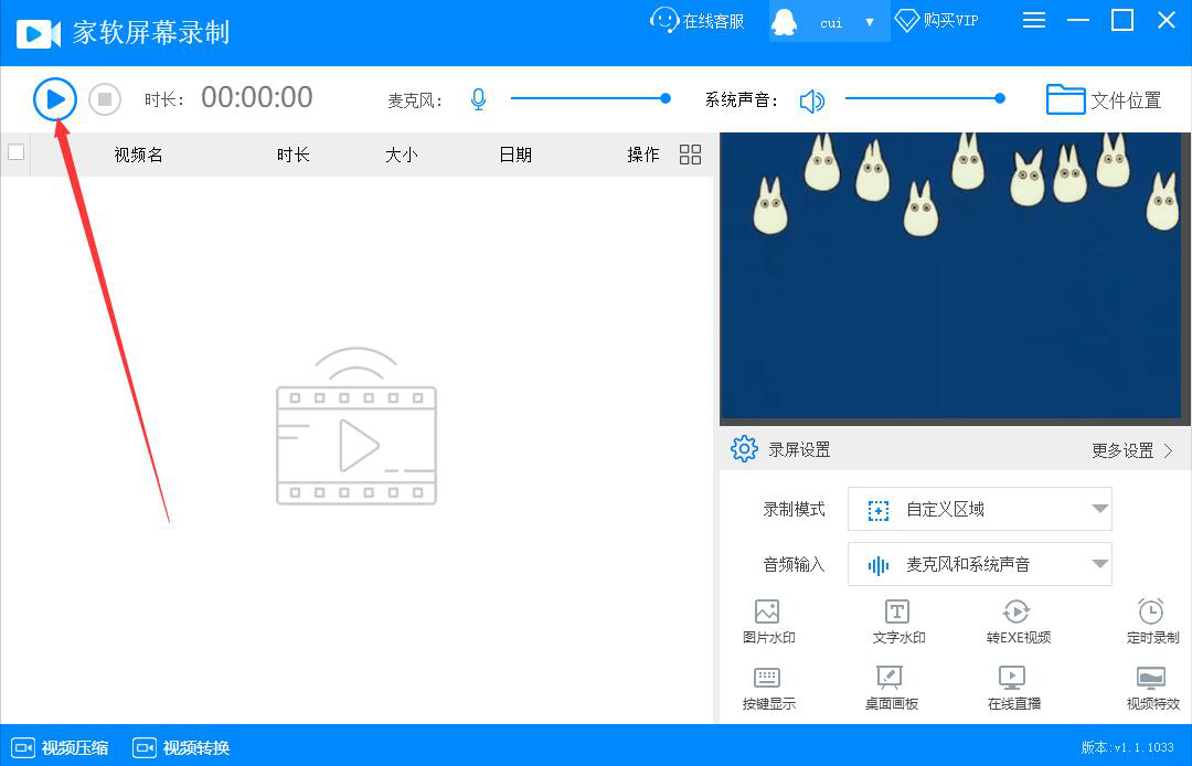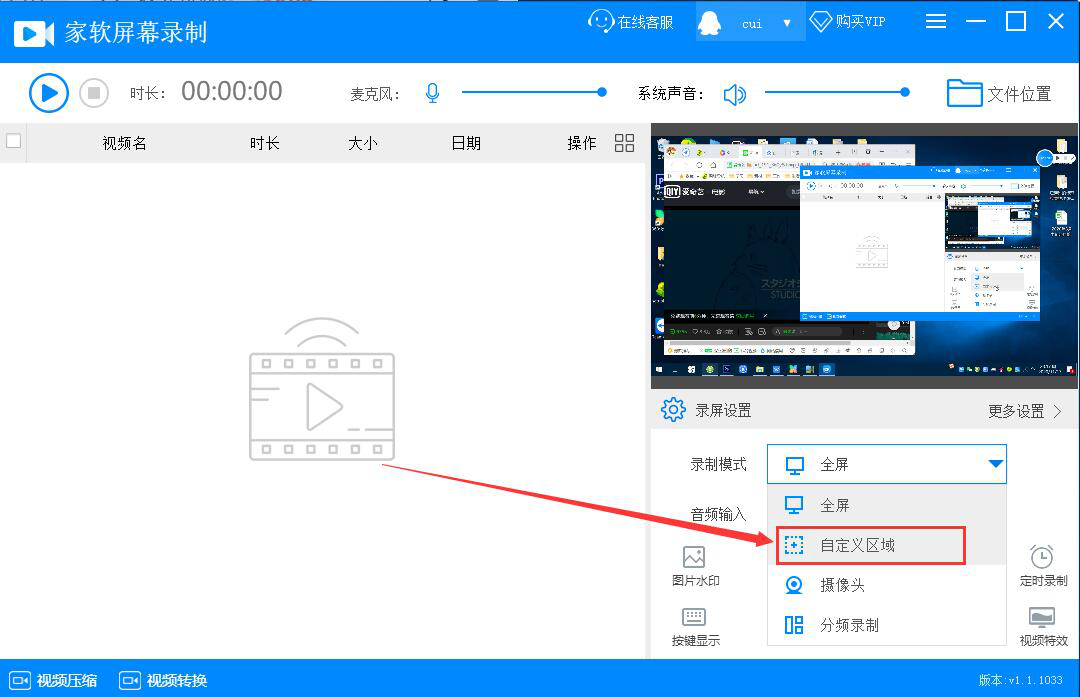 1、首先,我们打开家软屏幕录制软件。在其界面的右下方,根据自己的需要来选择录制视频模式,这里选择的是“自定义区域”。