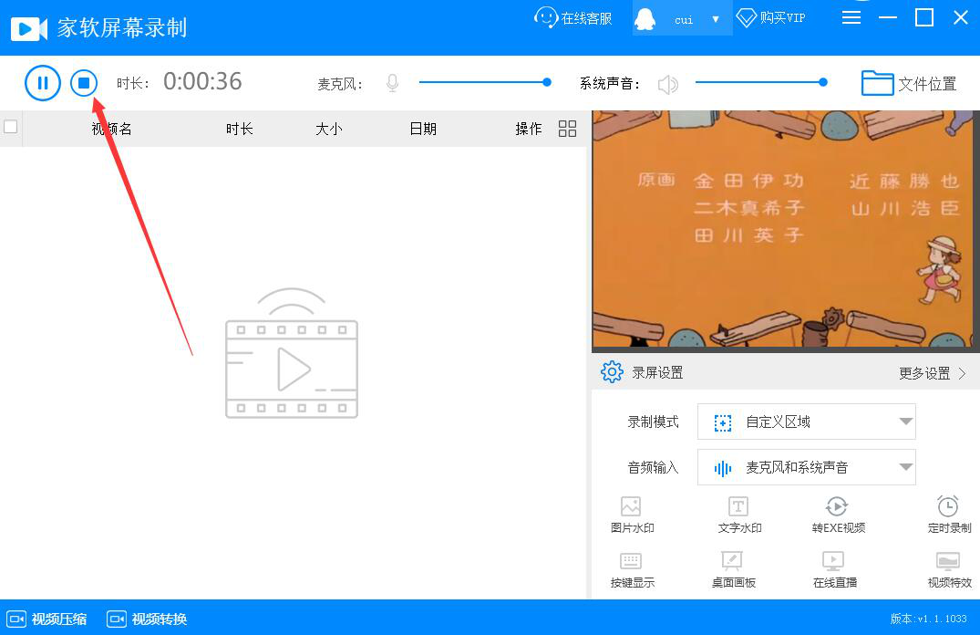 6、如果我们不想继续录制视频了,就点击家软屏幕录制界面左上方的“结束”按钮。