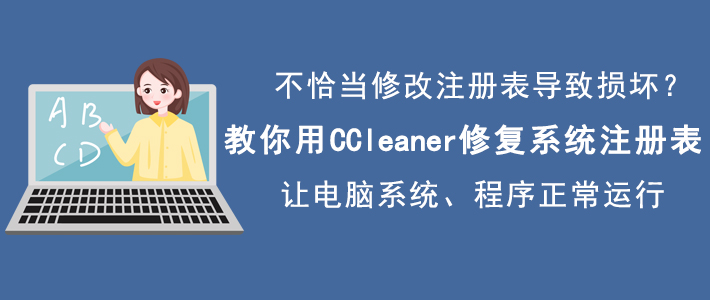 很多人在整理电脑文件的时候会不小心修改系统注册表,不仅损坏了注册表,更是导致了某些程序或者电脑系统无法正常运行。为了解决这问题,我们可以用CCleaner修复系统注册表。而考虑到很多人没使用过该软件,不懂怎么修复,所以,下面为大家讲解如何使用CCleaner修复系统注册表。