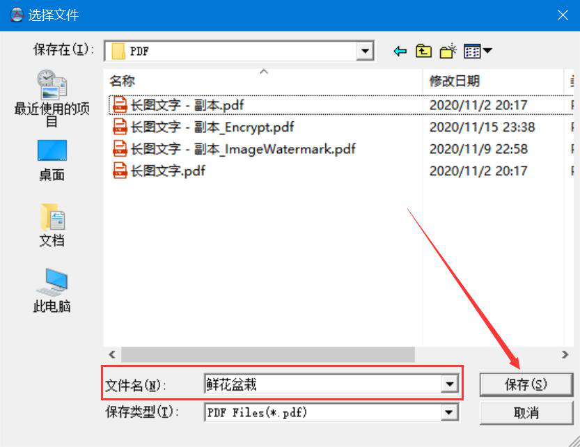 4、在FreePic2Pdf弹出的窗口中,选择多张图片转换成一个PDF文件后的保存路径,并对其命名,再点击“保存”按钮。