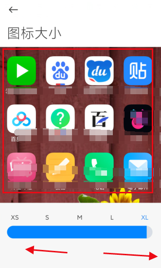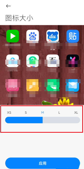 向左滑动是变小,向右滑动是变大,可在上方图中预览图标大小,然后点击【应用】,