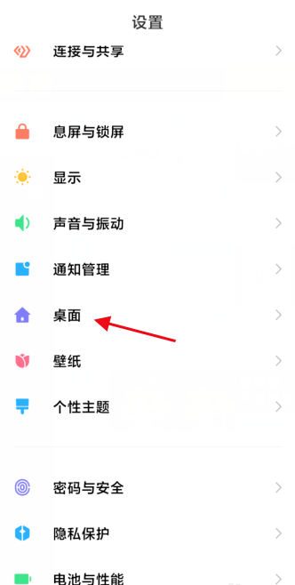 打开小米手机,点击进入设置界面,如图,选择【桌面】,