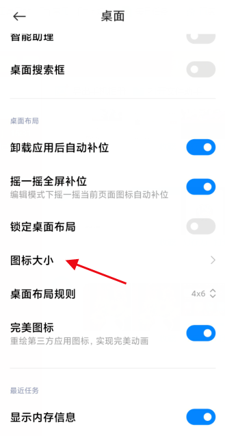 跳转至以下界面,点击【图标大小】,如图,中间位置有一个可滑动的滑块,