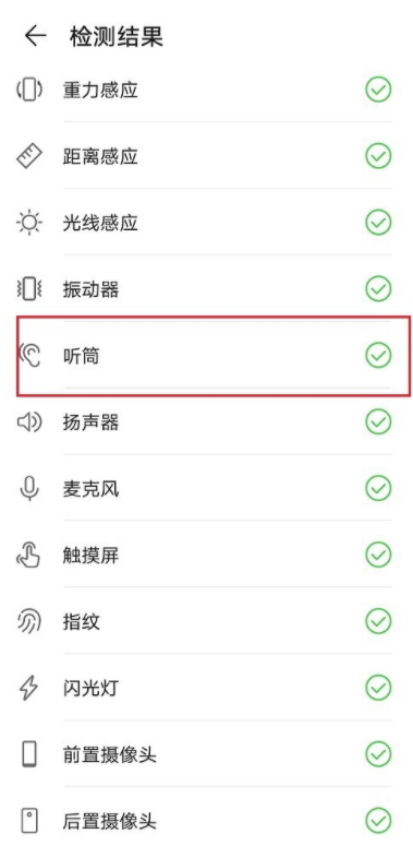 如图,查看检测结果,华为手机听筒是正常的。