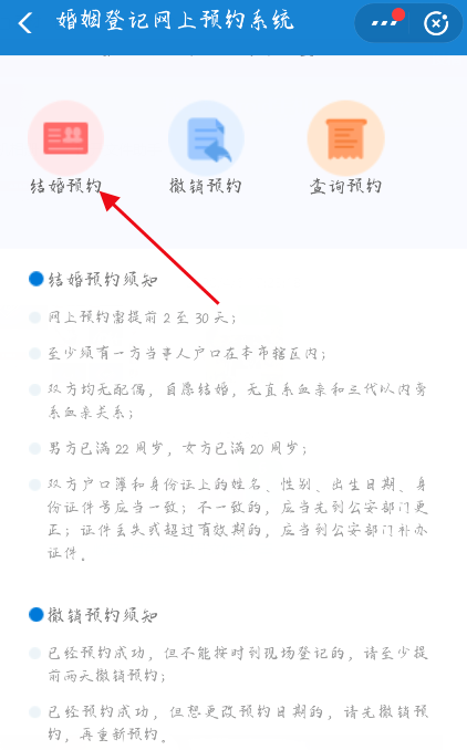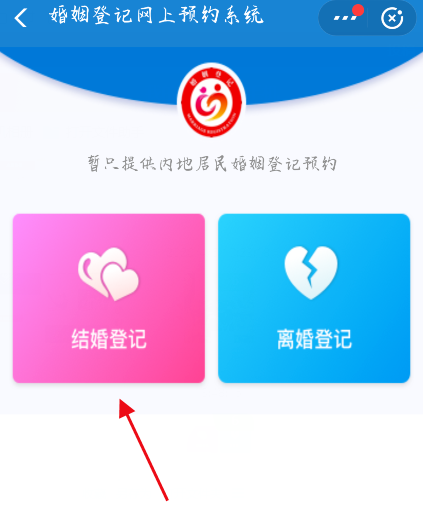 进入婚姻登记网上预约系统,点击【结婚登记】,