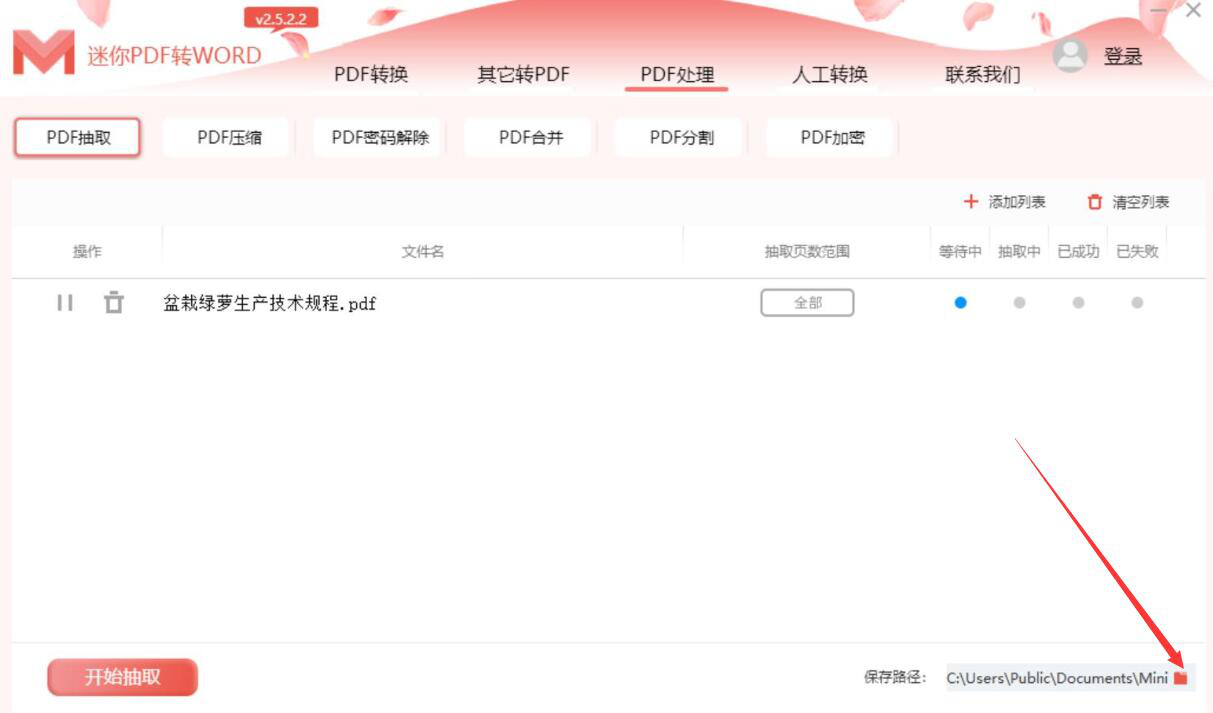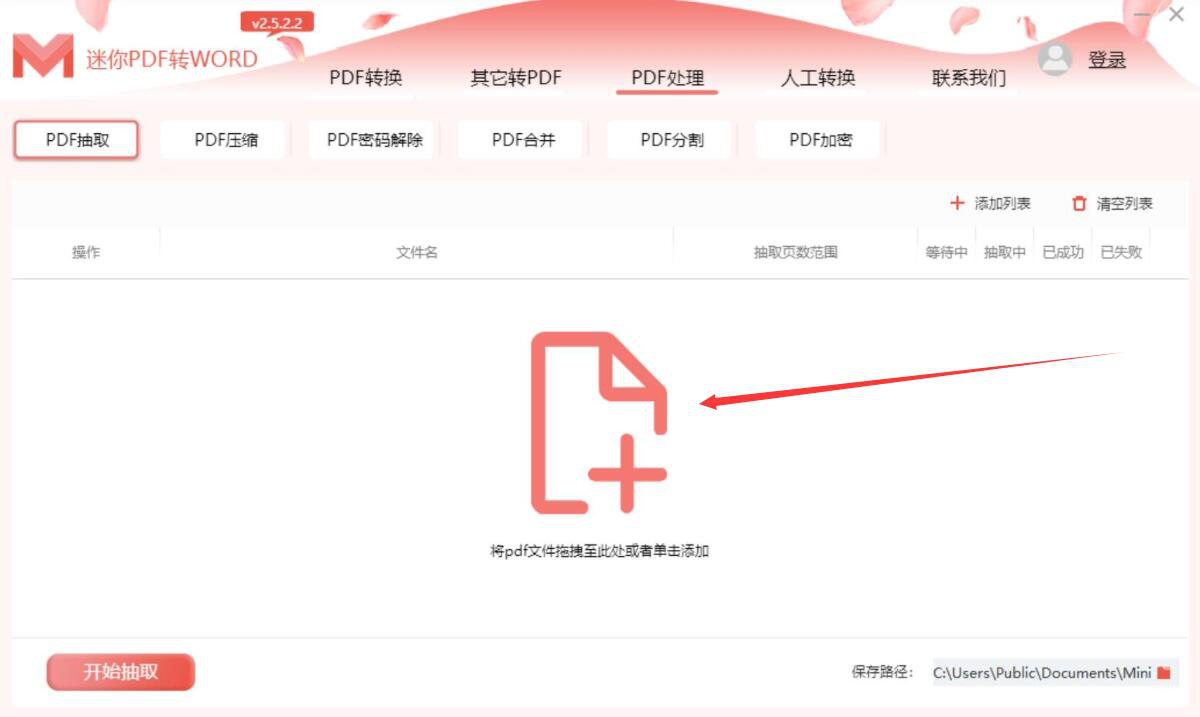迷你PDF转Word软件如何抽取PDF文件页面?