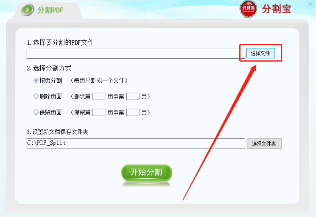 2、然后,在分割宝的分割PDF操作界面中,我们点击“选择文件”按钮。