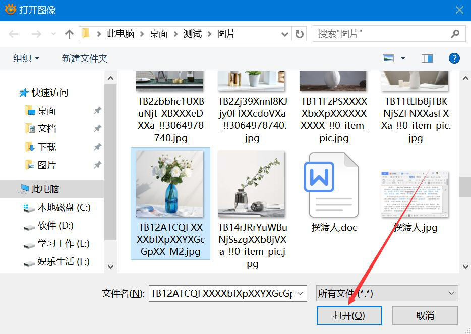 2、在弹出的窗口中,将需要添加浮雕效果的图片选中,并点击“打开”按钮,将其导入XnConvert。