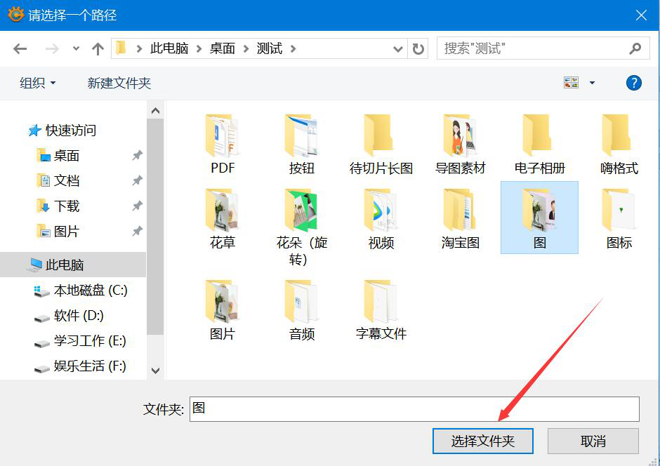 7、在弹出的窗口中,选择添加了浮雕滤镜效果的图片的保存位置,再点击“选择文件夹”按钮。