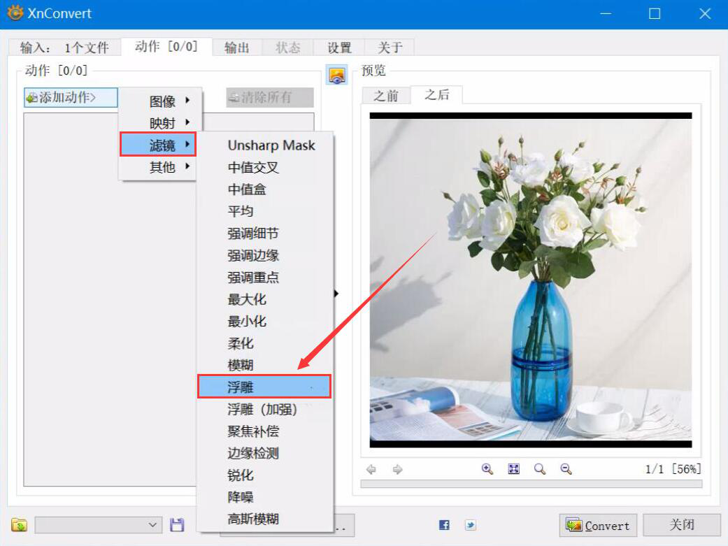 如何使用XnConvert给图片添加浮雕效果?