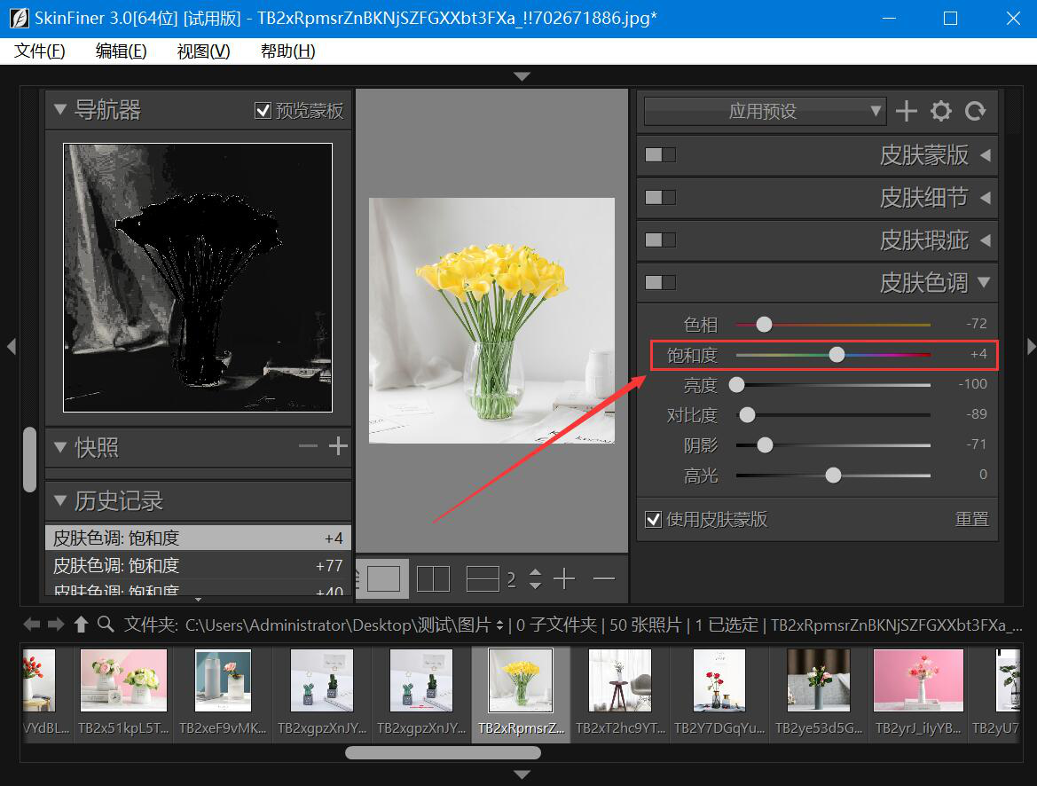 如何使用SkinFiner调整图片饱和度?