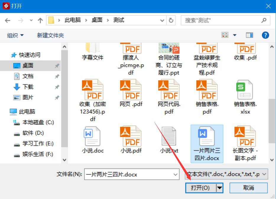 2、在弹出的窗口中,我们选择需要金舟文档翻译软件翻译成英文的文档,并点击“打开”按钮。