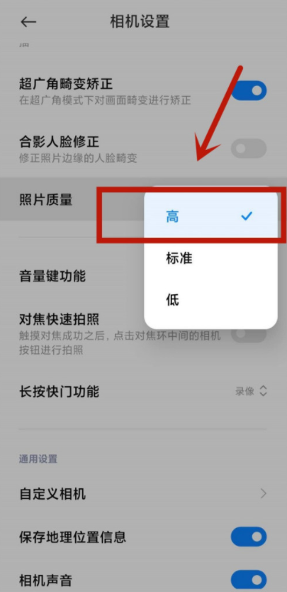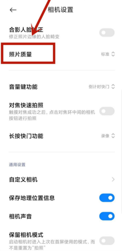 进入相机设置页面,点击【照片质量】选项,