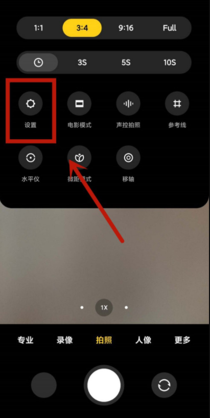 打开小米手机,点击【相机】应用,进入拍摄模式,点按窗口右上角的图标,