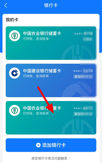 如图,在列表中选择需要锁定的银行卡,
