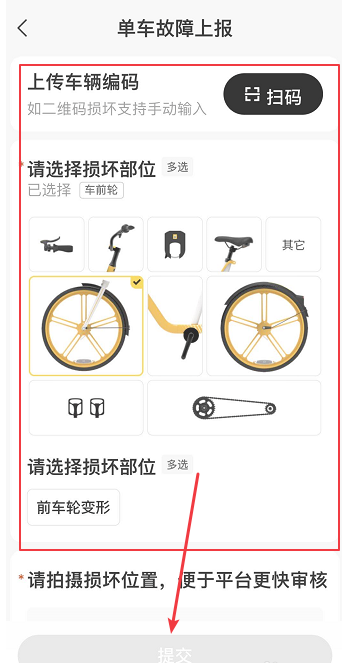 进入单车故障上报平台,填写故障情况,点击【提交】,等待处理。