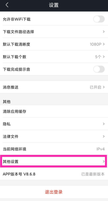 进入个人中心,往下滑动页面,点击【其他】——【设置】菜单,