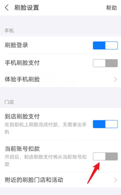 支付宝刷脸支付如何设置从当前账号扣款?