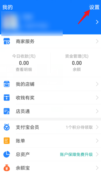 打开手机支付宝,进入首页,点击右下方【我的】,在个人中心点击设置选项,