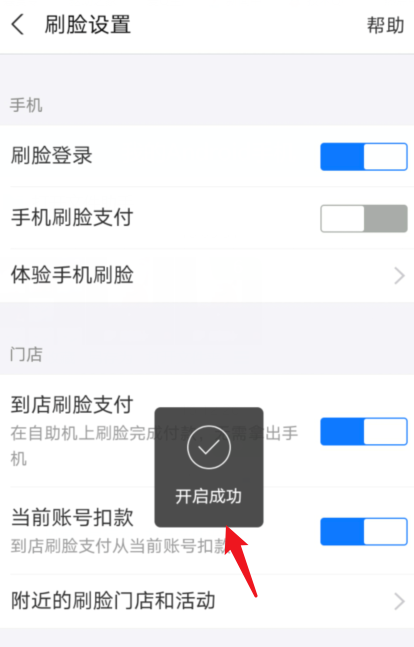 提示开启成功,在门店刷脸支付时即可从当前账号扣款。