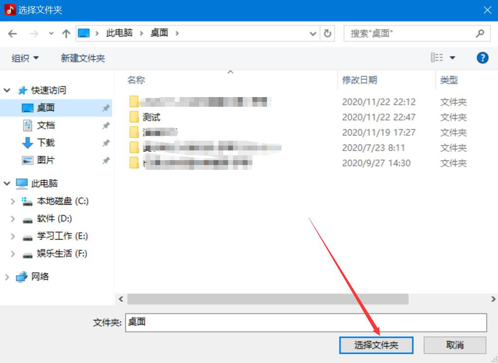 6、在闪电音频格式转换器弹出的窗口中,我们选择音频压缩后的保存路径,再点击“选择文件夹”按钮。