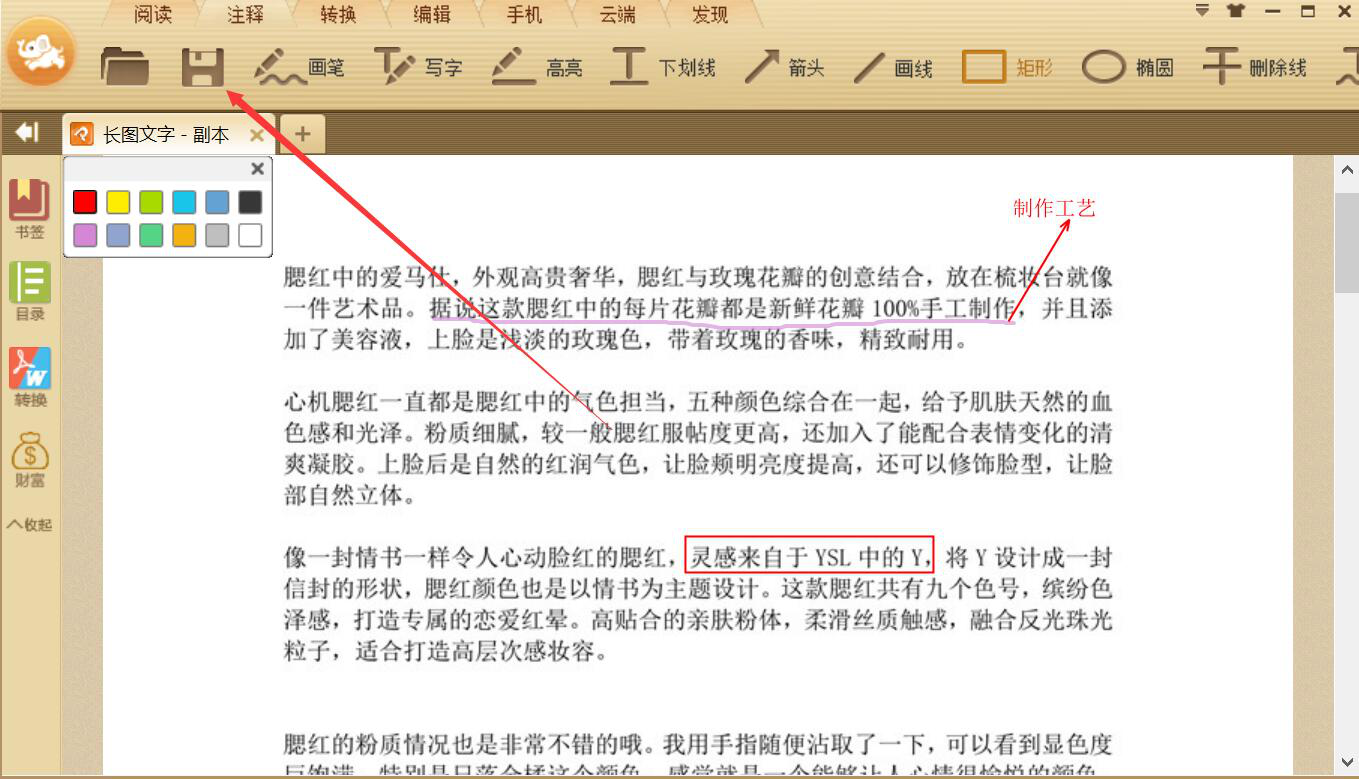 8、最后,给PDF文件添加的注释内容完成了,就点击极速PDF阅读器功能栏中的“保存”按钮。