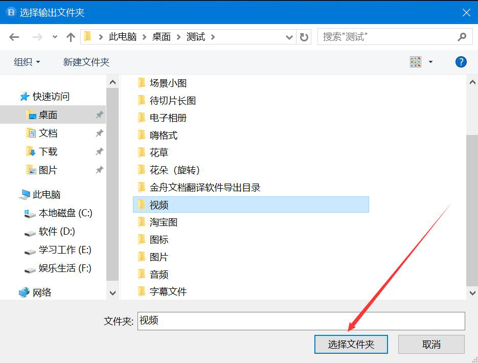 6、接下来,在Bandicut弹出的窗口中,我们选择视频拼接后的保存路径,再点击“选择文件夹”按钮。