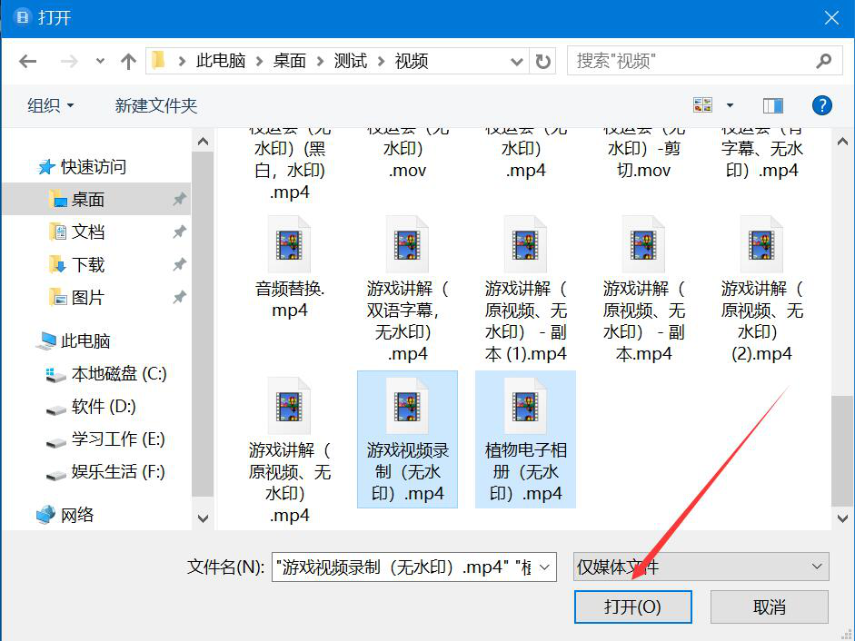 2、在弹出的窗口中,我们选择需要Bandicut拼接的视频文件,并点击“打开”按钮。
