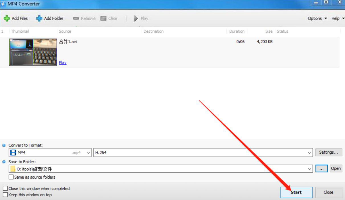 5、最后,回到Tomabo MP4 Converter操作界面,点击界面右下方的“Start”按钮,Tomabo MP4 Converter便开始将AVI转MP4。