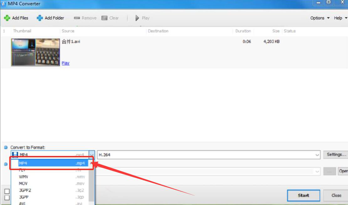 3、接下来,在Tomabo MP4 Converter软件的“Convert to Format”一栏中,我们选择转换为MP4格式,如下图所示。