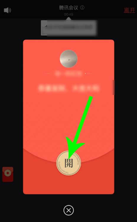 如图,当前正在召开会议,在会议室窗口点击红包图标,即可参与抢红包,