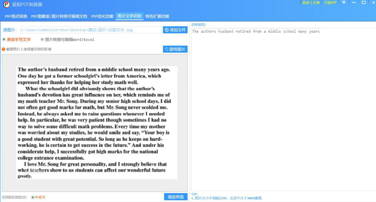 图片上的文字比较多,要手工录入的话,很浪费时间。我们可以用星如PDF转换器识别图片上的文字。不过,要注意的是,文字内容越多,识别的时间也会相应花得多一些。