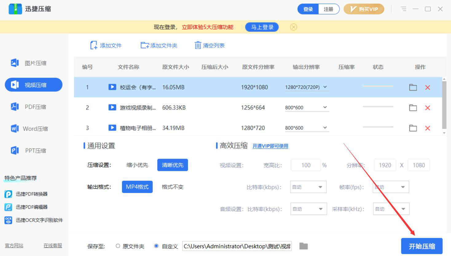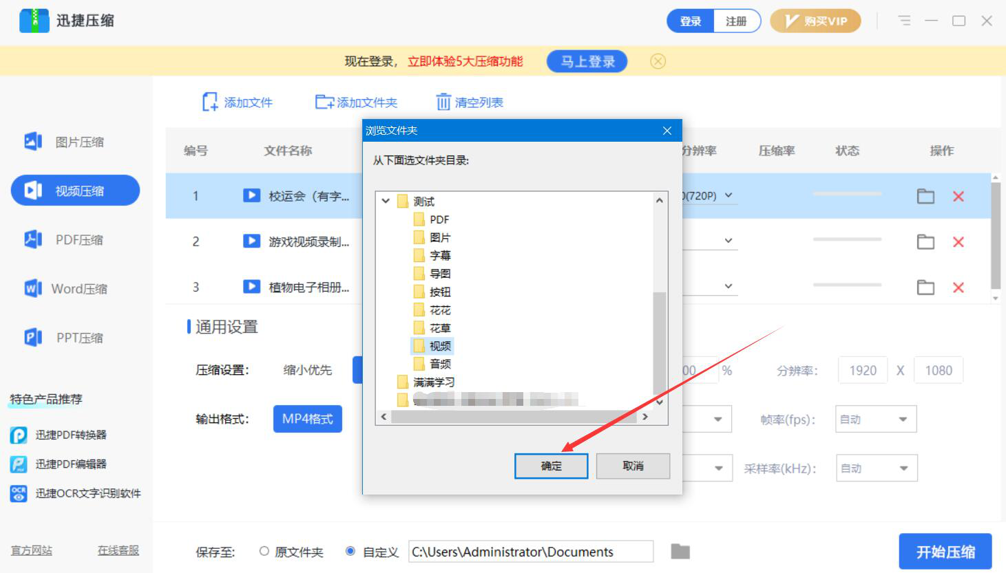 迅捷压缩如何批量压缩视频文件?
