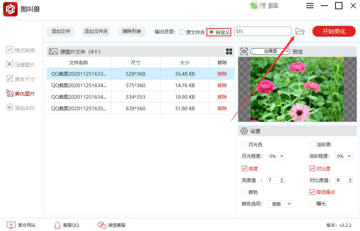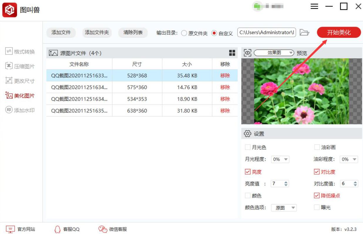 6、最后,我们点击界面右上方的“开始美化”按钮,图叫兽便开始批量美化图片,并将美化好的图片批量保存到指定的路径。