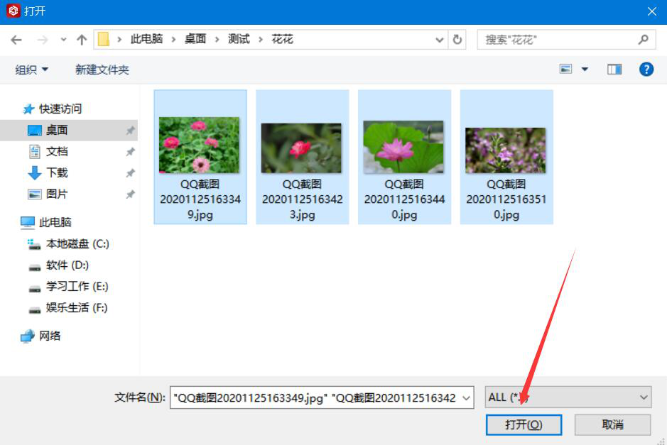 2、在弹出的窗口中,我们将需要图叫兽批量美化的图片一并选中,再点击“打开”按钮。